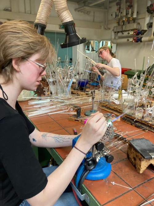 S radostí oznamujeme, že naši studenti mají možnost prezentovat své umělecké dovednosti na mezinárodní úrovni. V rámci spolupráce s partnerskou školou Glasfachschule v německém Zwieselu strávili naši žáci Oli Damborský a Júlia Jesenská dva týdny při tvorbě unikátní kolekce autorských šperků, která kombinuje kov a sklo a reflektuje téma vody. Projekt koordinoval učitel dílenských praktik Pavel Hübsch, DiS., výtvarného vedení se ujala učitelka navrhování a výtvarné přípravy MgA. Juliana Höschlová.