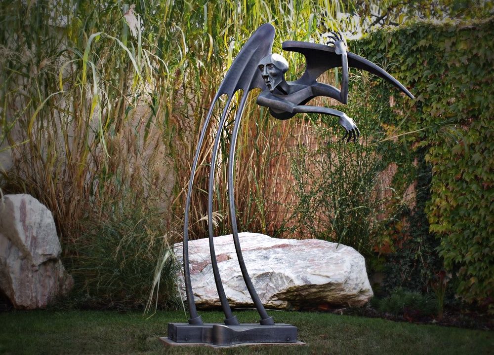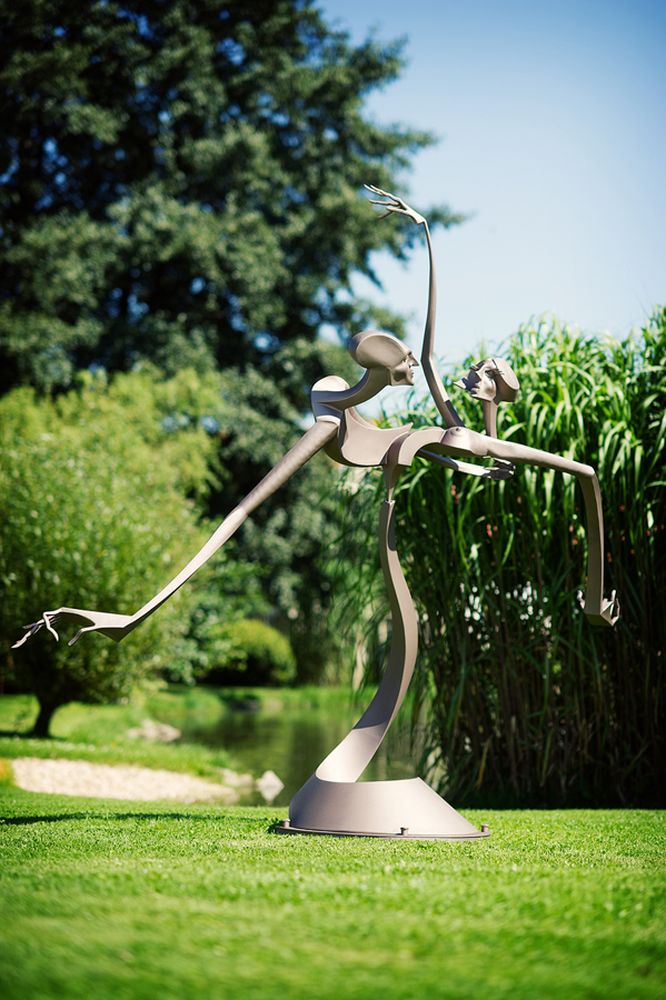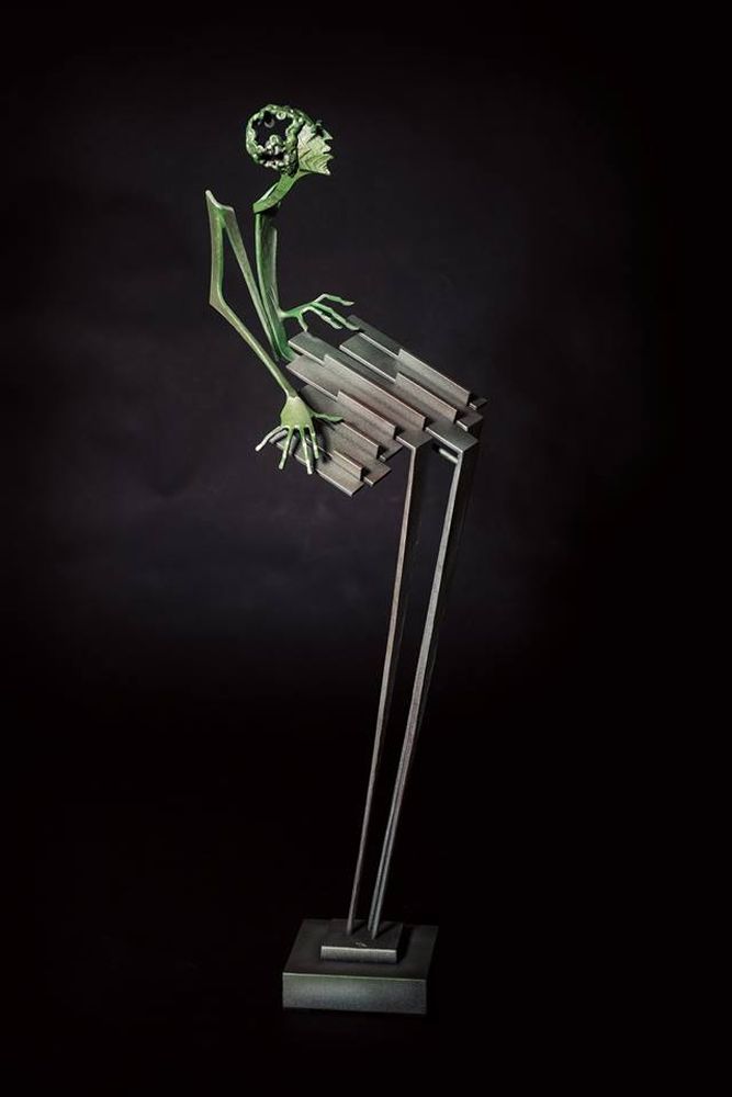 Odvážné propojení s přírodními materiály, kontrast tíživého kovu s lehkostí pozic a gest, anatomické vazby i popření proporcí a zkratkovitost.... to je Gibbus.